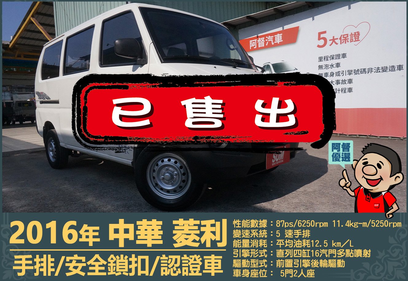 2016年 中華菱利│2人座│手排│廂型車│安全鎖扣│一年僅跑不到四萬三千公里